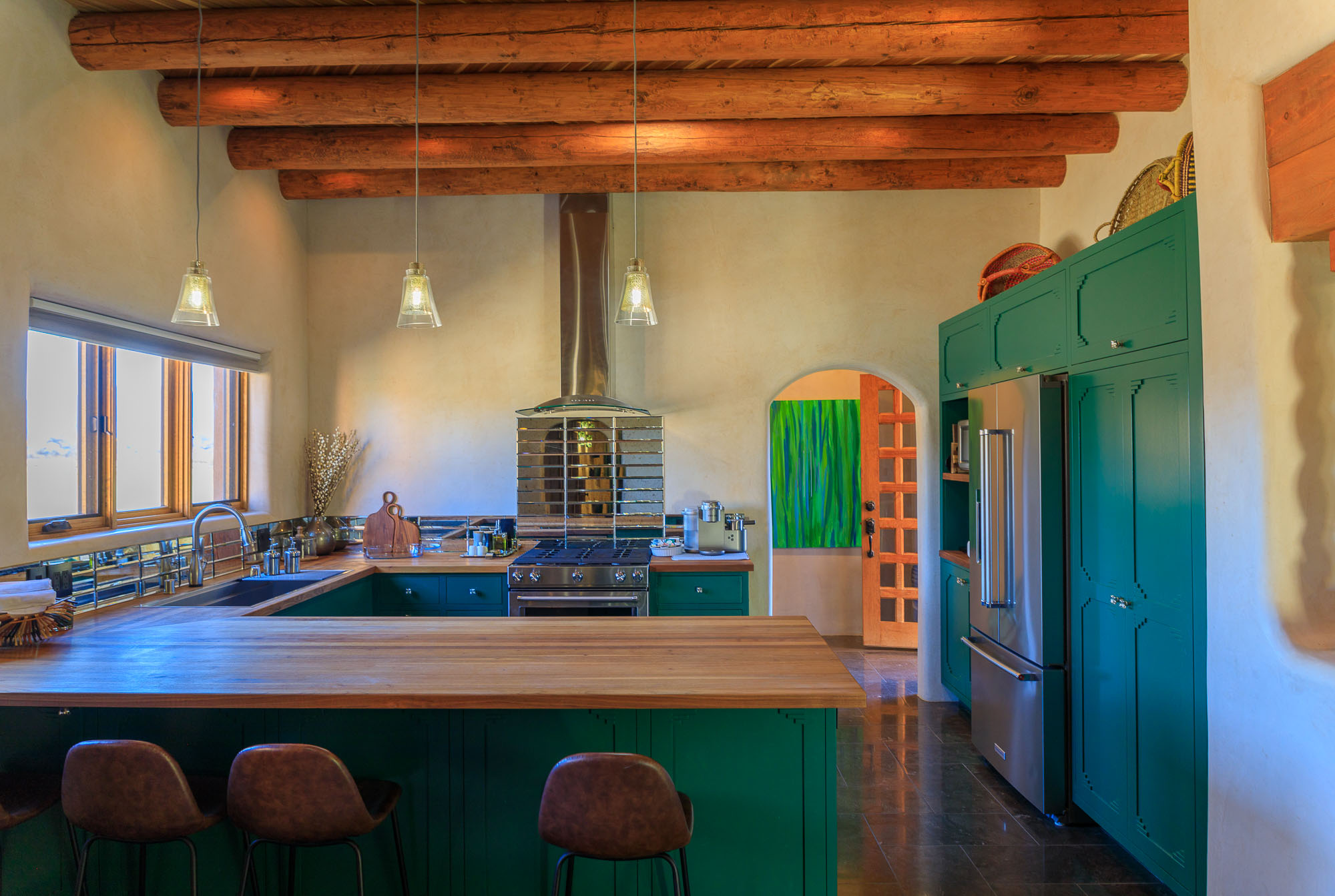 Rooted in centuries of Northern New Mexico history, this Adobe Hacienda reflects a thoughtful balance between heritage and contemporary living. Inspired by family traditions dating back to the 1700s, the design honors time-tested materials and craftsmanship while introducing modern comfort and refined detailing suited to the desert Southwest.